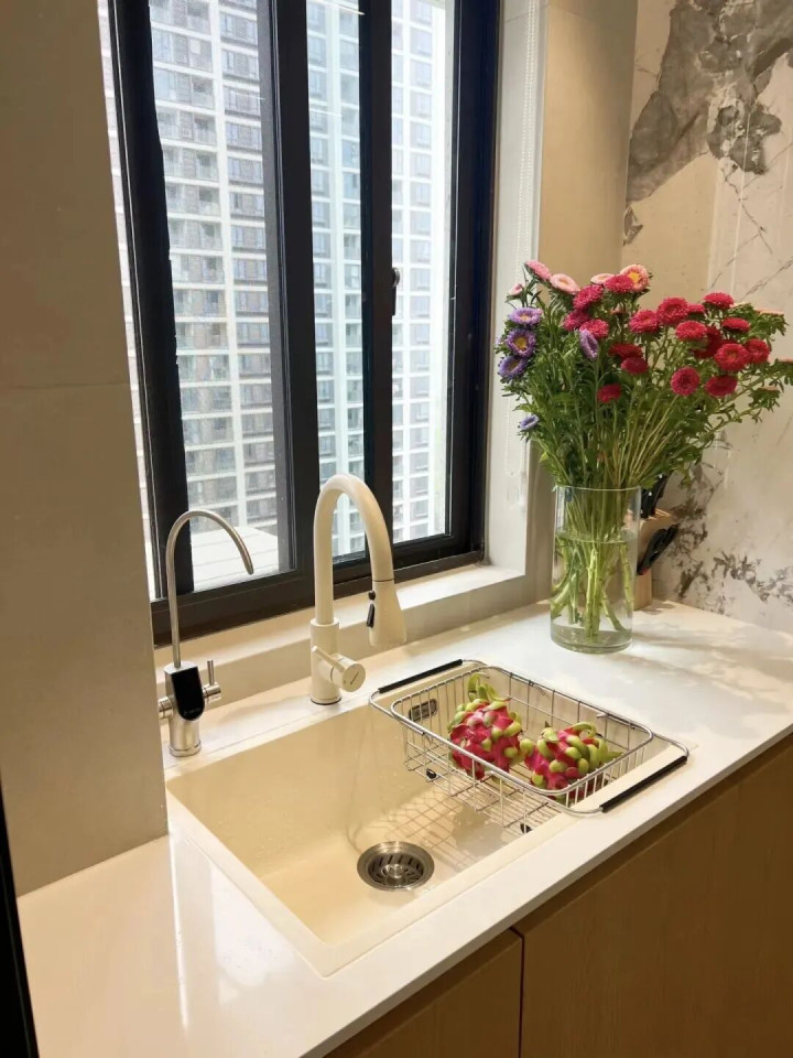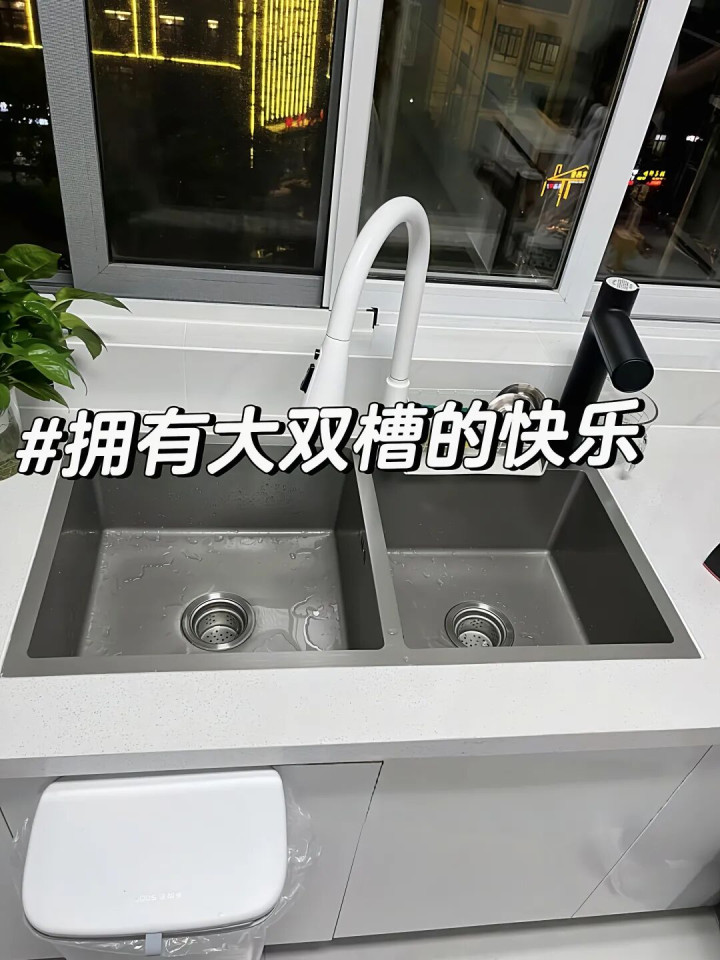 如若咱们家的厨房浪费大,摆得下一个超大的双槽,那就平直怡悦地放一个吧。洗锅、洗菜,一槽解决,一气呵成,爽到飞起!