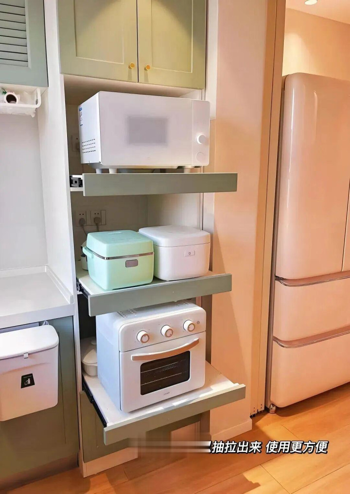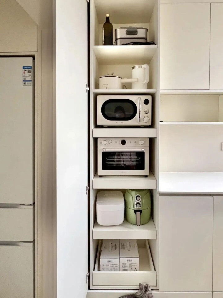 给厨电找个专属高柜,不仅能整都收纳,还能带点“雄伟上”的气质。