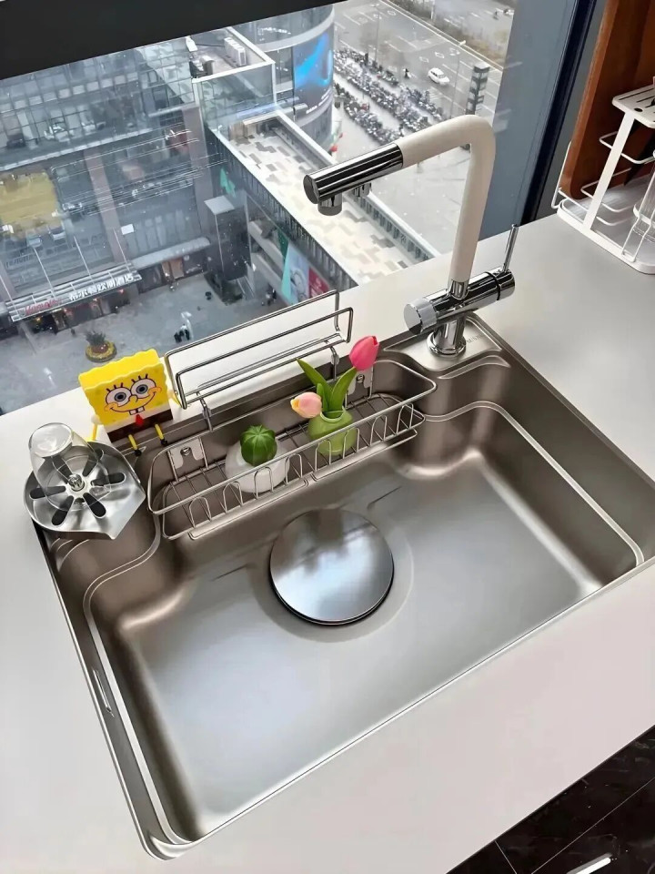 如若厨房空间有限,没法装下阿谁“巨无霸”双槽,那就选用大单槽吧。单槽诚然从简,但大得让咱们有浪费的空间粗率推崇。